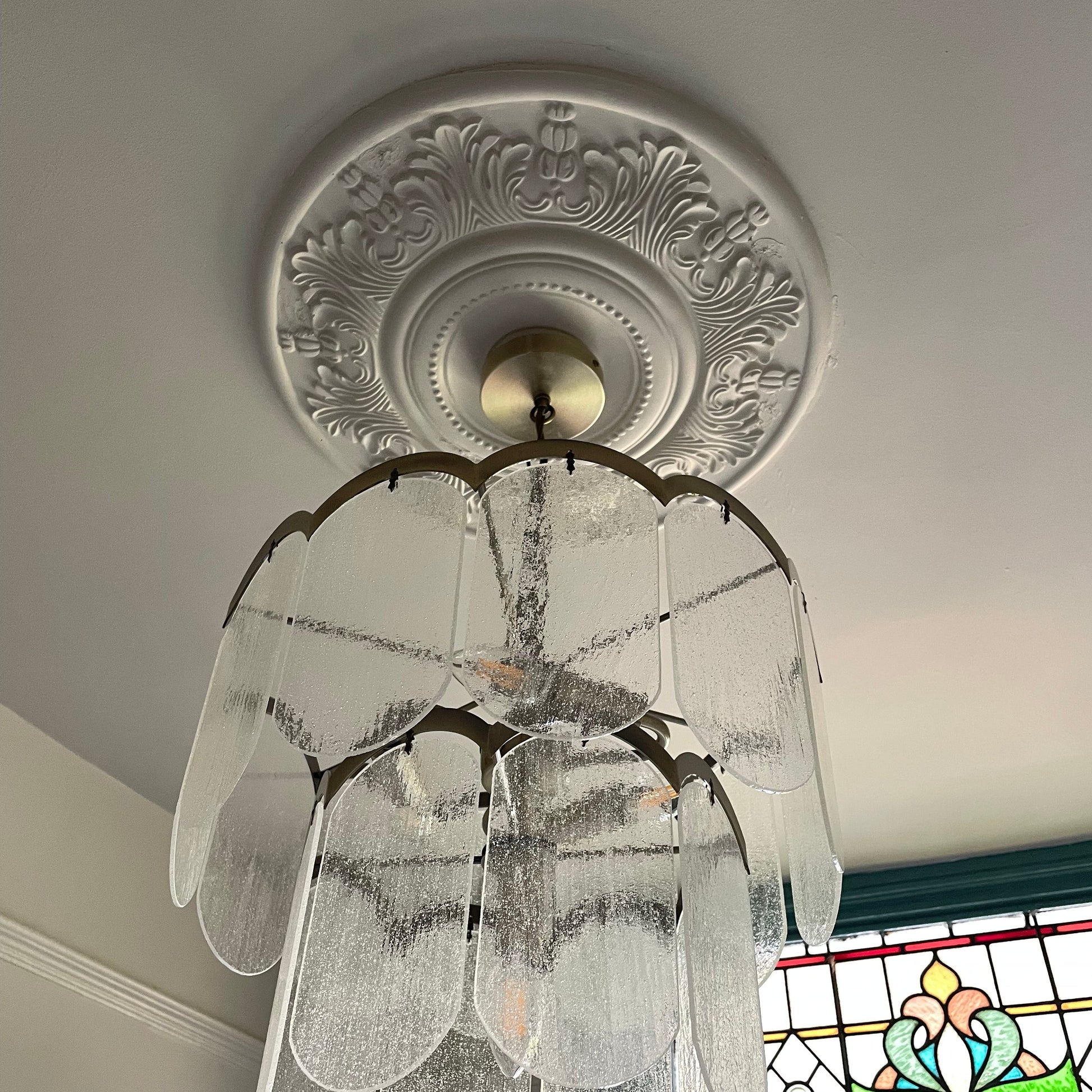 Although originally a Victorian or perhaps Edwardian ceiling rose design, it does not look out of place in any property old or new. With a diameter of 500 mm, just under two feet, it is the ideal size for modern houses, and is suitable for everywhere but the largest rooms in older Victorian and Edwardian houses.