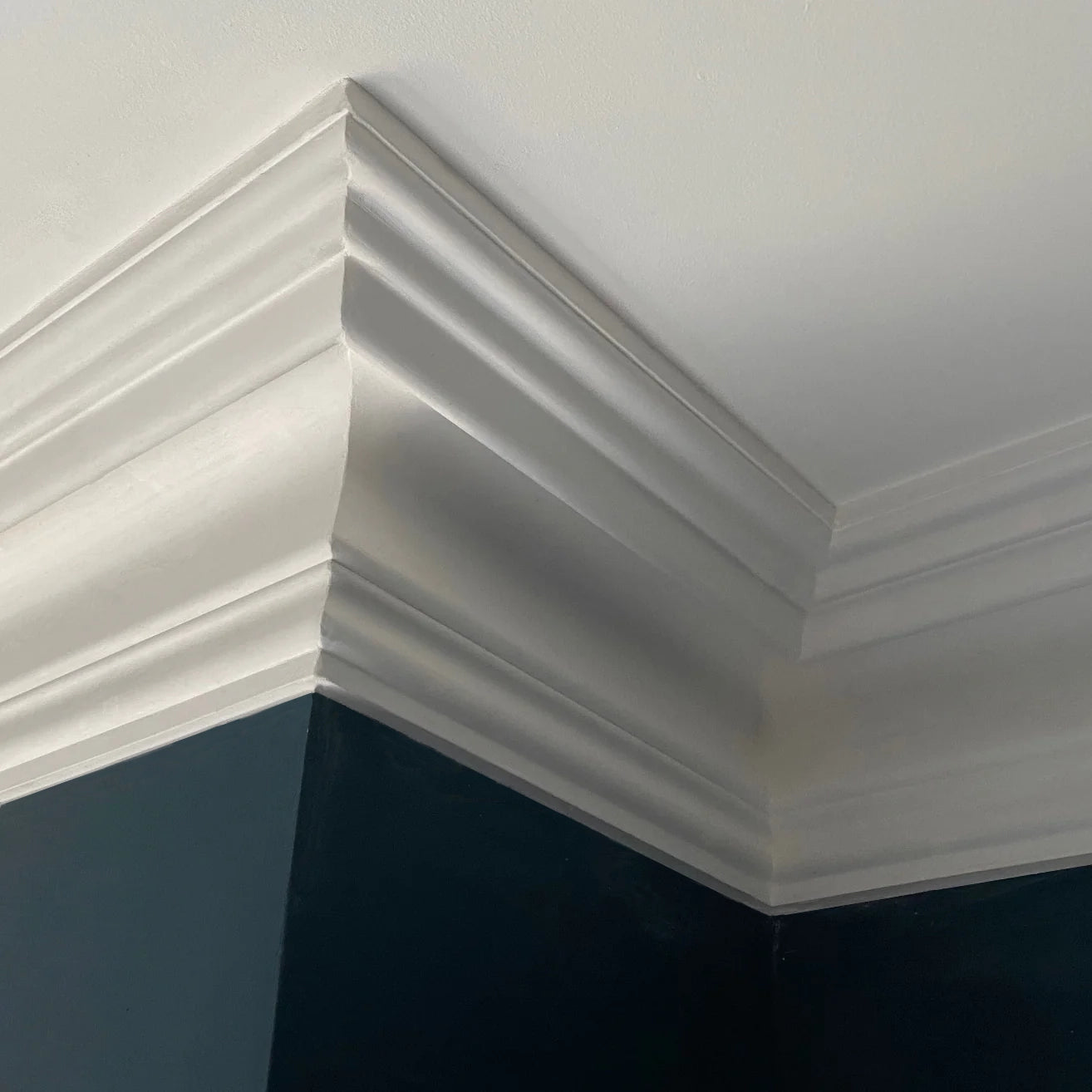 It has all the elements of a classic Victorian plaster cornice: a deep cove, ogee mouldings to the top and bottom rails, and a large drip moulding above. What also made it stand out was its size, with 160mm, 6-inch drop. It is perfect for the higher-than-average ceilings of Victorian and Edwardian houses once we had seen just how good it looked in the house for which it was originally made, we decided to add it to our cornice range and make it available to all our customers.