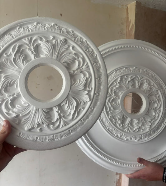 The new open plan lounge and diner now feels complete, thoughtful and consistent. Our plain acanthus plaster ceiling rose MPR061 is a great choice if you are wanting something simple yet charming, it works best in medium to large rooms, this can be complete with our small acanthus plaster ceiling rose SPR006 in smaller rooms such as box bedrooms or hallways for a cohesive finish.