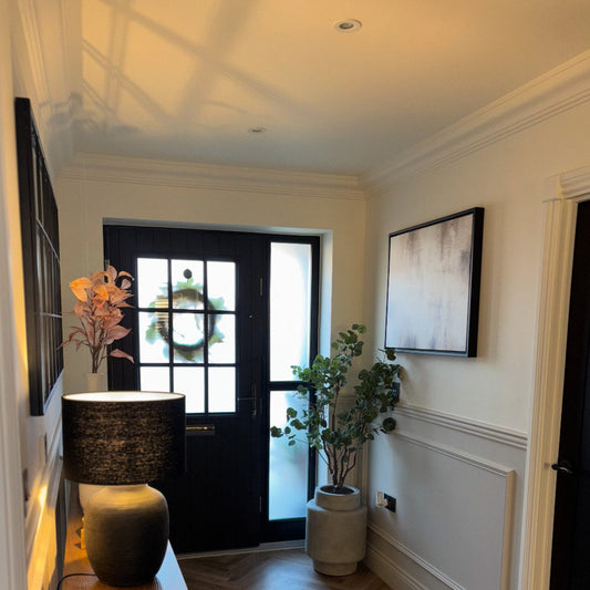 The cornice provides a beautiful frame to the entrance of their home and effortlessly adds class and elegance. Although originating from the Renaissance era, we have noticed our Ogee Plaster Coving becoming a popular choice for new builds or homes with modern interiors, its simple shape provides a sleek transition from wall to ceiling that instantly elevates the new welcoming space.