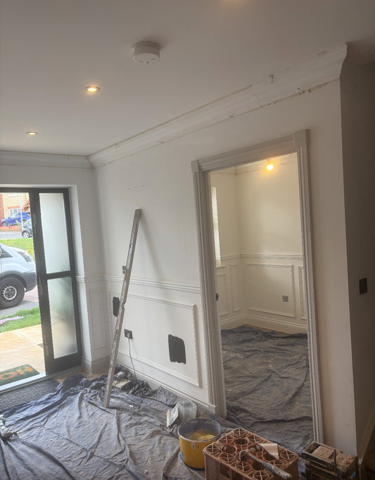 What a fantastic achievement for this homeowner in Orrell. The pictures above show what a brilliant job they've done transforming their entrance hall with stylish decor choices and our Ogee plaster coving MPC039.