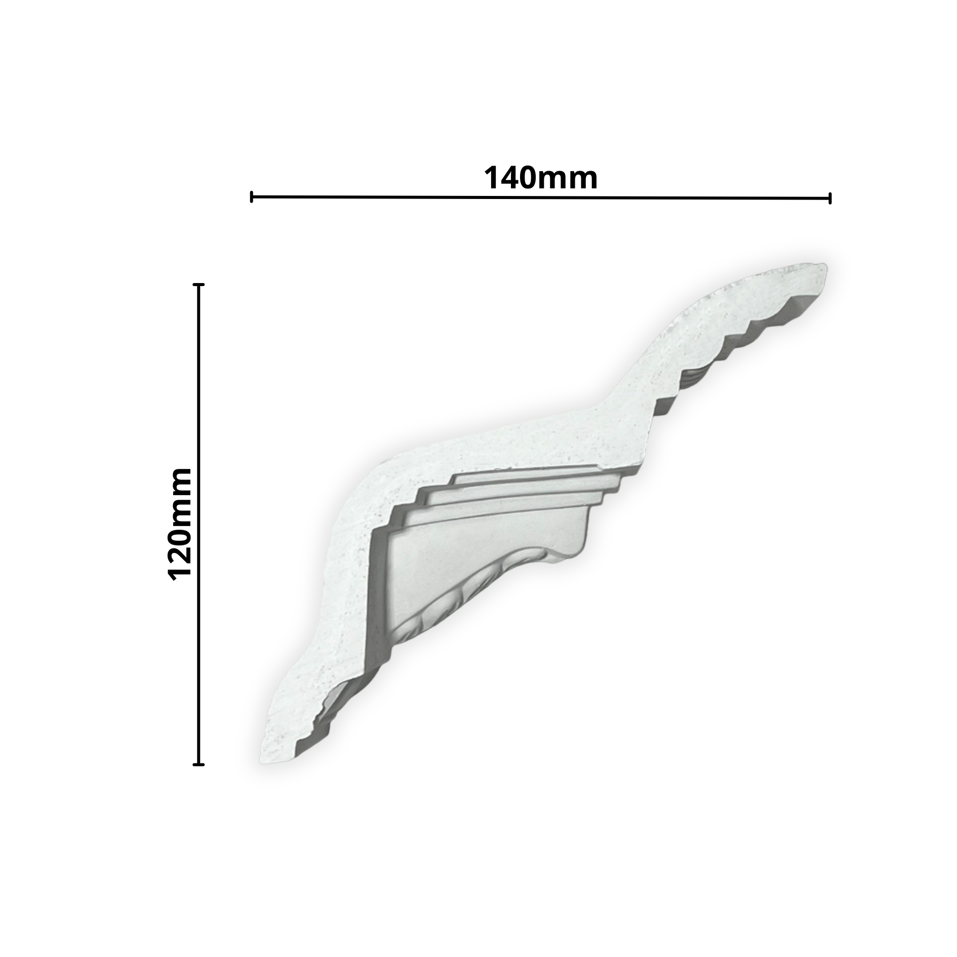 Our coving is priced and ordered in metres. This is the style of plaster cornice that would have greeted you when you stepped into the entrance hall of a Victorian house, designed to look impressive. It’s heavily decorated with modillion blocks and acanthus leaves. We stock three sizes of this style of cornice - this being the second largest with a drop of 120mm. We have a larger and even more ornate design LPC019 which has a drop of 170mm. For these larger sizes of ornate cornice we would always recommend using a professional coving fitter as it is difficult to cut and fill the joints especially the corners, which should be filled with casting plaster for the best results, for a 10KG bag of casting plaster. Please see our code CP010, we can recommend coving fitters in most areas.