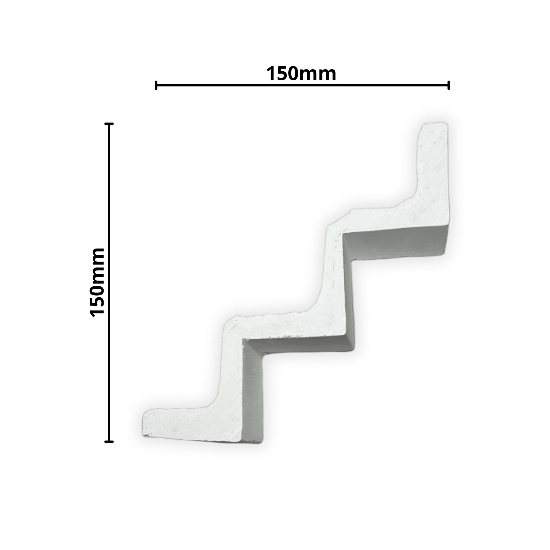 Our coving is priced and ordered in metres. This is our largest stepped plaster coving, with a drop of 150mm. We also have two smaller sizes MPC055 with a drop of 120mm and MPC028 with a drop of 100mm. This is a large cornice and needs to be securely fixed. Please see our video installation guides for advice on how to do this. We would also recommend always using casting plaster to fill the joints, to achieve a perfectly smooth finish and to prevent cracking later on as can happen when filler is used.