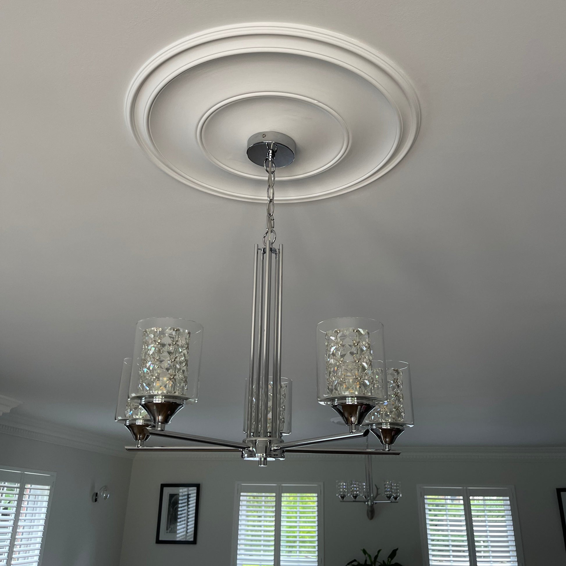 With a diameter of 24 inches, this is the second largest of five plain ceiling roses we have in this design, allowing matching plain plaster ceiling roses to be fitted throughout the whole house, the other sizes are SPR070 320MM Diameter, MPR071 420MM Diameter, MPR072 520MM Diameter and the 720MM LPR074