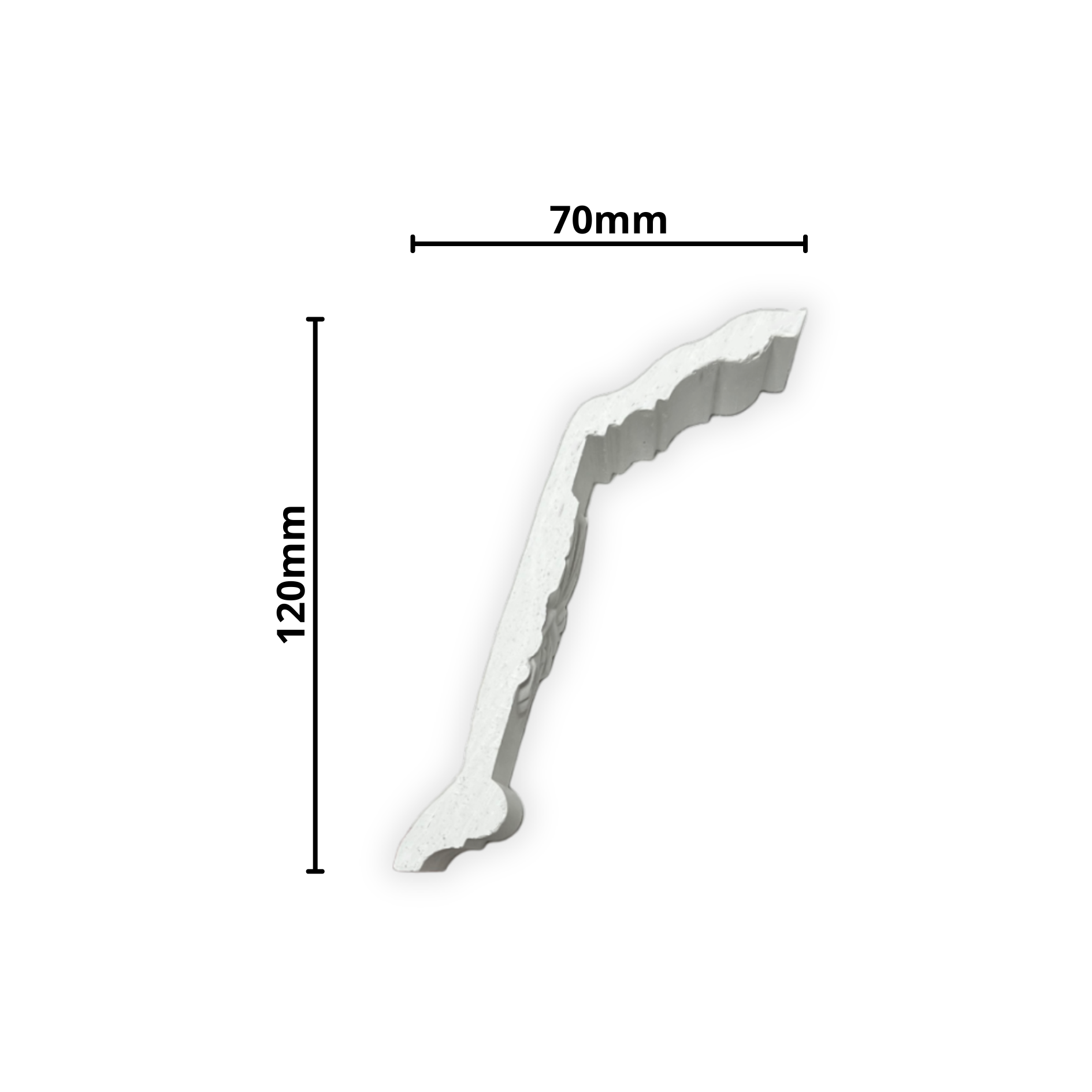 If you measure your room(s) and order an exact amount of plaster corner then one wall could end up being finished in small off-cuts. To avoid this we recommend you order 20% extra of this patterned cornice to ensure longer pieces of coving are used wherever possible as this will create the best finish with balanced mitres. This coving comes in 2.4m lengths.